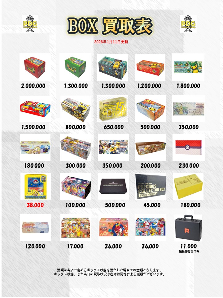 PDG Collector's Shop 買取表